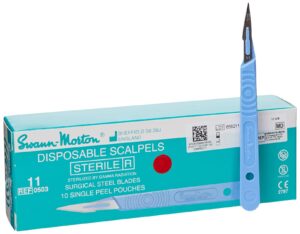 Skalpel nr. 11 Swann Morton, ostrze chirurgiczne ze stali węglowej z rączką, 10szt./op.