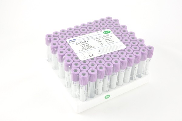 Probówki z EDTA dostarczają wysokiej jakości próbki krwi pełnej do oznaczeń hematologicznych. Sól potasowa EDTA K2 lub K3 jest stosowana jako antykoagulant, który dobrze konserwuje składniki komórkowe krwi. Wewnętrzna ścianka probówki jest pokryta EDTA w postaci sprayu. Próbki z EDTA mogą być stosowane w analizatorach bezpośredniego pobierania próbek bez ich faktycznego otwierania. Rozmaz krwi należy wykonać w ciągu 2 godzin po pobraniu krwi. Ważne jest dobre wymieszanie pobranej krwi w probówce, które przeciwdziała powstaniu niepożądanych skrzepów.