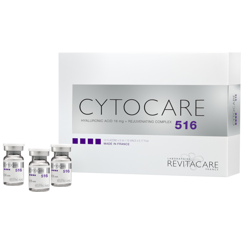 Gama CytoCare® 502/516/532 to ekskluzywne koktajle do mezoterapii francuskiego Laboratorium RevitaCare® dające efekty odmłodzenia i wygładzenia skóry. Wyjątkowa skuteczność tkwi w składzie, oprócz zawartości kwasu hialuronowego w skład CytoCare® wchodzi 55 aktywnych składników w tym witaminy, sole nieorganiczne i aminokwasy. Dzięki CytoCare® biologiczny kapitał skóry jest zachowany, a efekty starzenia zatrzymane. Intensywne nawodnienie i regeneracja skóry, jej widocznie lepsza kondycja, to tylko niektóre korzyści wynikające z zastosowania CytoCare®. Synergiczne działanie witamin, aminokwasów i minerałów z kwasem hialuronowym przyspiesza regenerację komórkową.