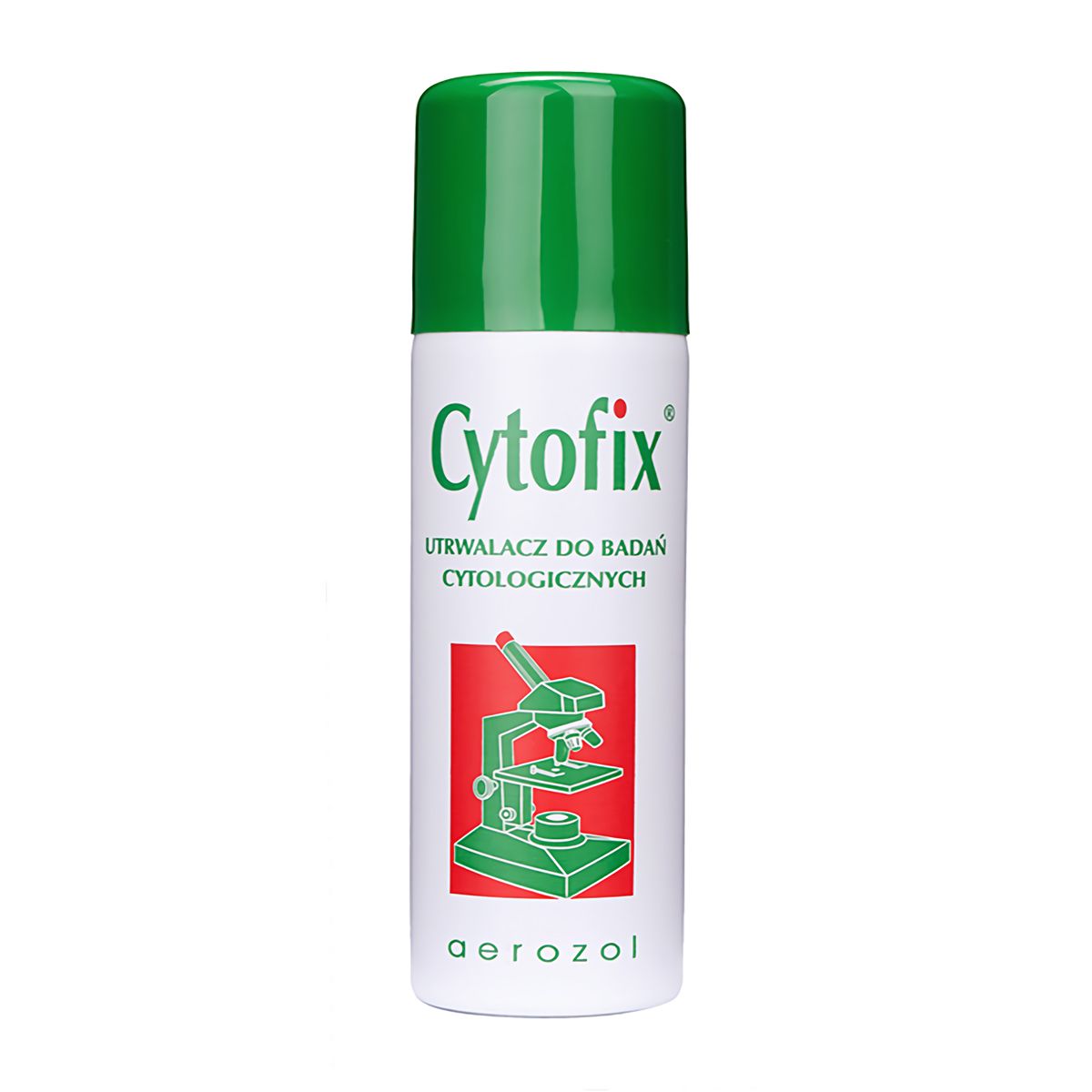 Cytofix jest preparatem w aerozolu do utrwalania pobranych na szkiełka mikroskopowe rozmazów biologicznych przed ich późniejszą oceną lub transportem.
