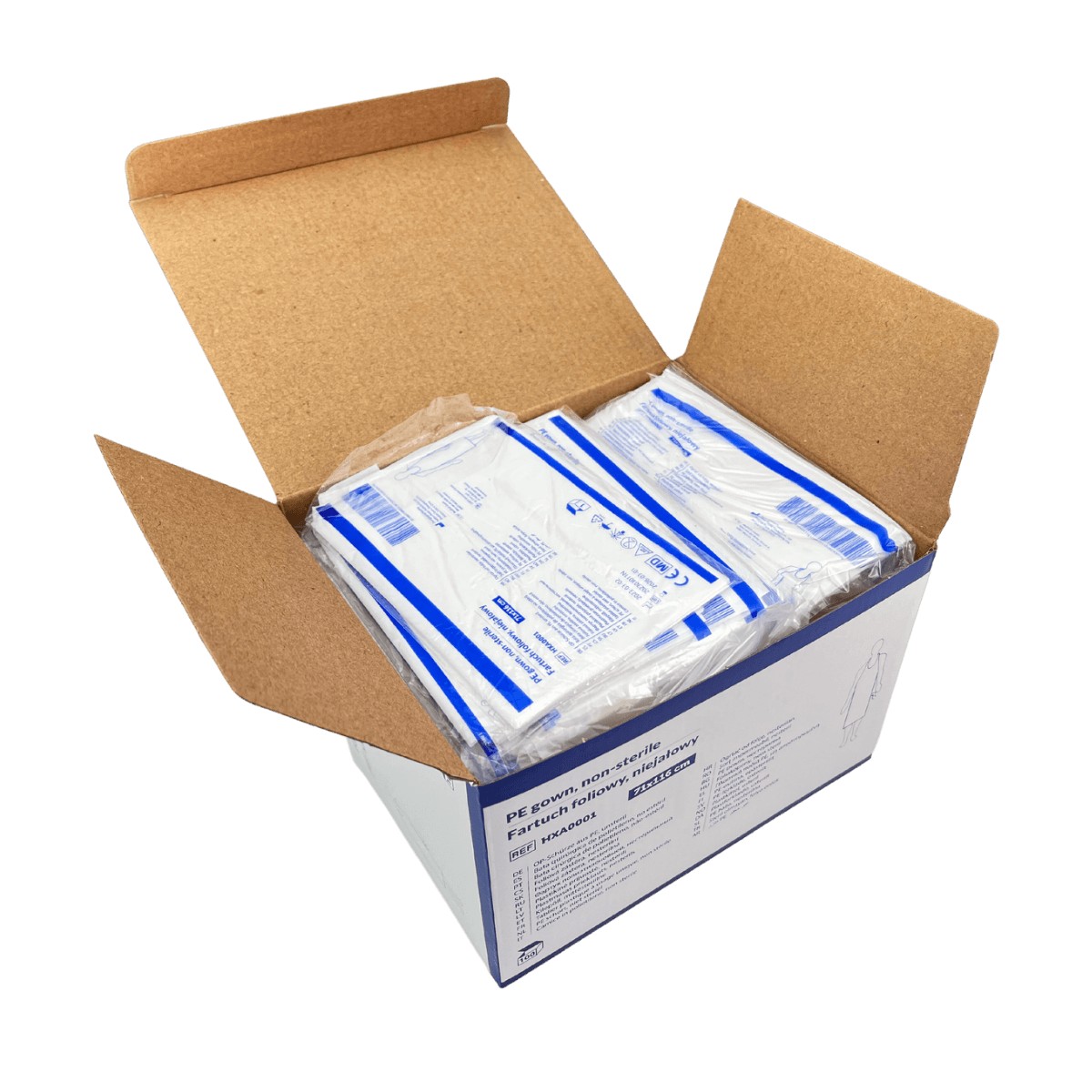 Fartuch medyczny z folii polietylenowej przeznaczony do ochrony i zapewnienia bezpieczeństwa. Produkt, który łączy wygodę i funkcjonalność. Swoje zastosowanie znajdzie w gabinetach lekarskich, salonach kosmetycznych, fryzjerskich, gdzie istnieje wysokie ryzyko zachlapania odzieży.