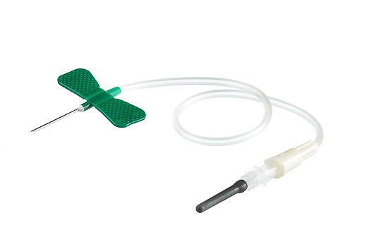 Igła motylkowa z Luer Adapterem Vacuette  21G, wykorzystywana do pobierania krwi oraz procedur infuzji.