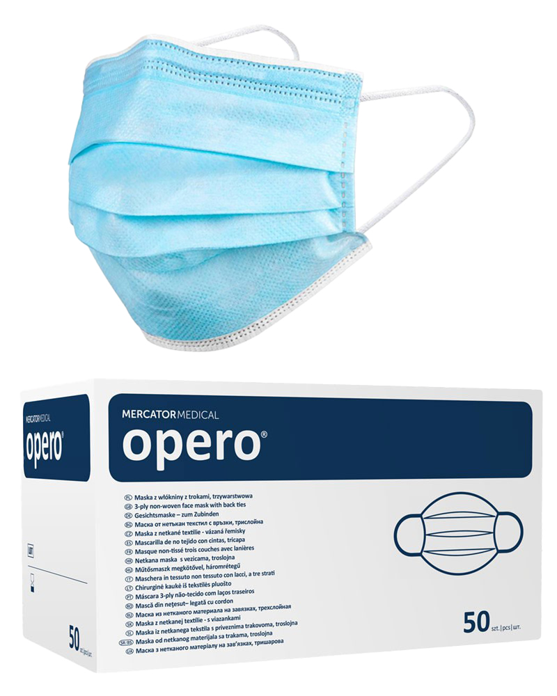 Maseczka chirurgiczna OPERO 3W z włókniny z gumką, niebieska, 50szt./op.