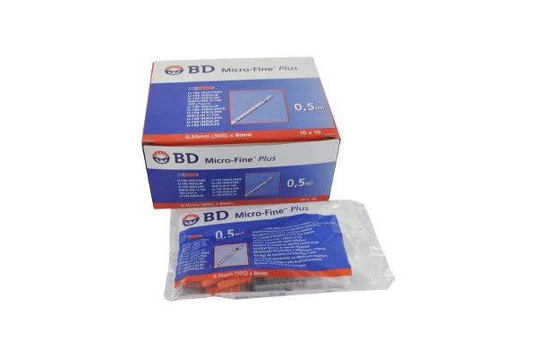 Strzykawka (insulinówka) przeznaczona do podskórnego podawania insuliny przy leczeniu cukrzycy.