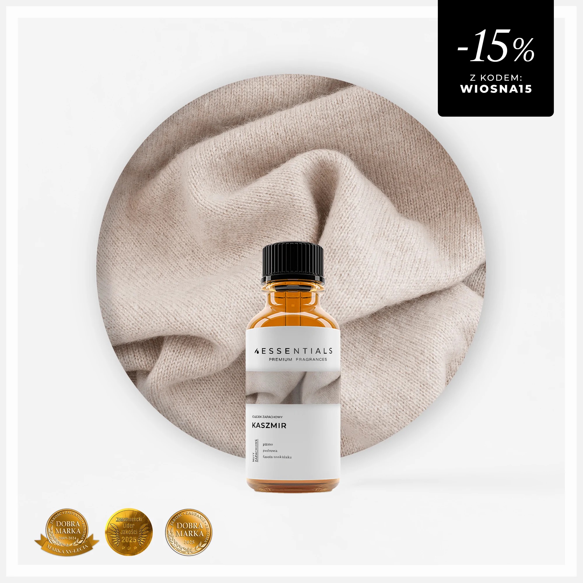 Kaszmir to zapach, który nie potrzebuje intensywności, by zachwycać — cichy, miękki i wyrafinowany. Stworzony dla tych, którzy w zapachu szukają spokoju, klasy i codziennego komfortu.