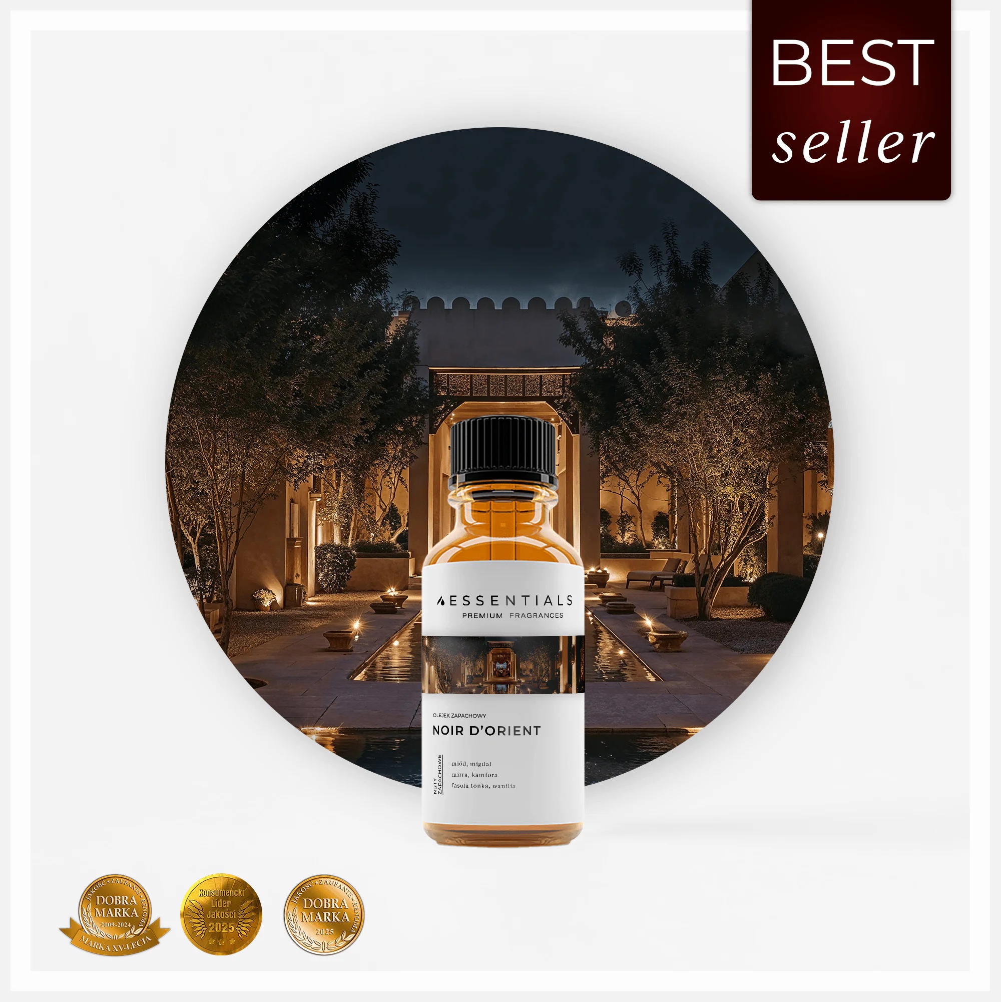 Olejek zapachowy Noir d’Orient doskonale sprawdzi się w świecach, woskach, perfumach domowych, dyfuzorach zapachowych, a także w kosmetykach pielęgnacyjnych – balsamach, kremach, peelingach czy mgiełkach do ciała. Może być także stosowany do aromatyzacji wnętrz i tkanin – szczególnie w sypialniach, salonach, butikowych przestrzeniach i gabinetach relaksu. Dobrze wpisuje się w kolekcje jesienno-zimowe, ale również jako elegancki akcent zapachowy przez cały rok – wszędzie tam, gdzie liczy się wrażenie wyrafinowanego ciepła i harmonii.