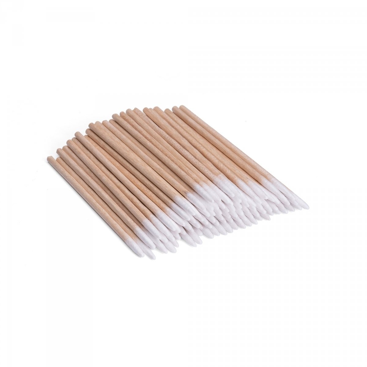 Patyczki drewniane zakończone bawełną z precyzyjną końcówką. Idealnie sprawdzą się podczas poprawek przy makijażu, przedłużaniu rzęs lub przy wykonywaniu manicure oraz pedicure. Pomagają czyścić trudno dostępne miejsca.