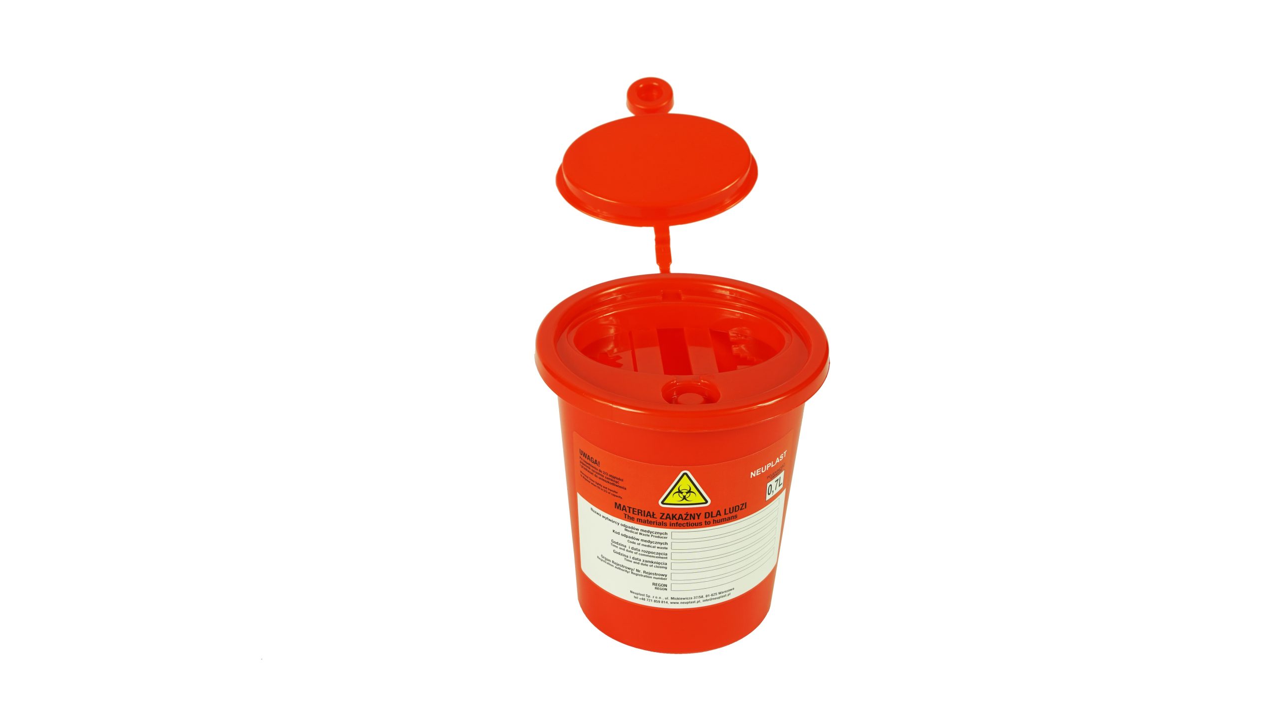 Pojemnik przeznaczony do zbiórki odpadów medycznych o ostrych końcach i krawędziach i/lub organicznych odpadów medycznych.