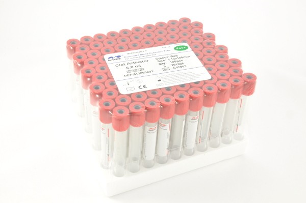 Probówki z aktywatorem krzepnięcia używane są do pobierania krwi i testów biochemicznych. Wewnątrz na ściankach probówki powleczone są silikonem oraz mikroskopijnymi drobinkami krzemionki w celu przyśpieszenia krzepnięcia. Powłoka z cząsteczek w kolorze białym lub brązowawym na wewnętrznych ściankach aktywuje proces krzepnięcia zaraz po wymieszaniu pobranego materiału w probówce (patrz – instrukcja mieszania probówek po pobraniu krwi).