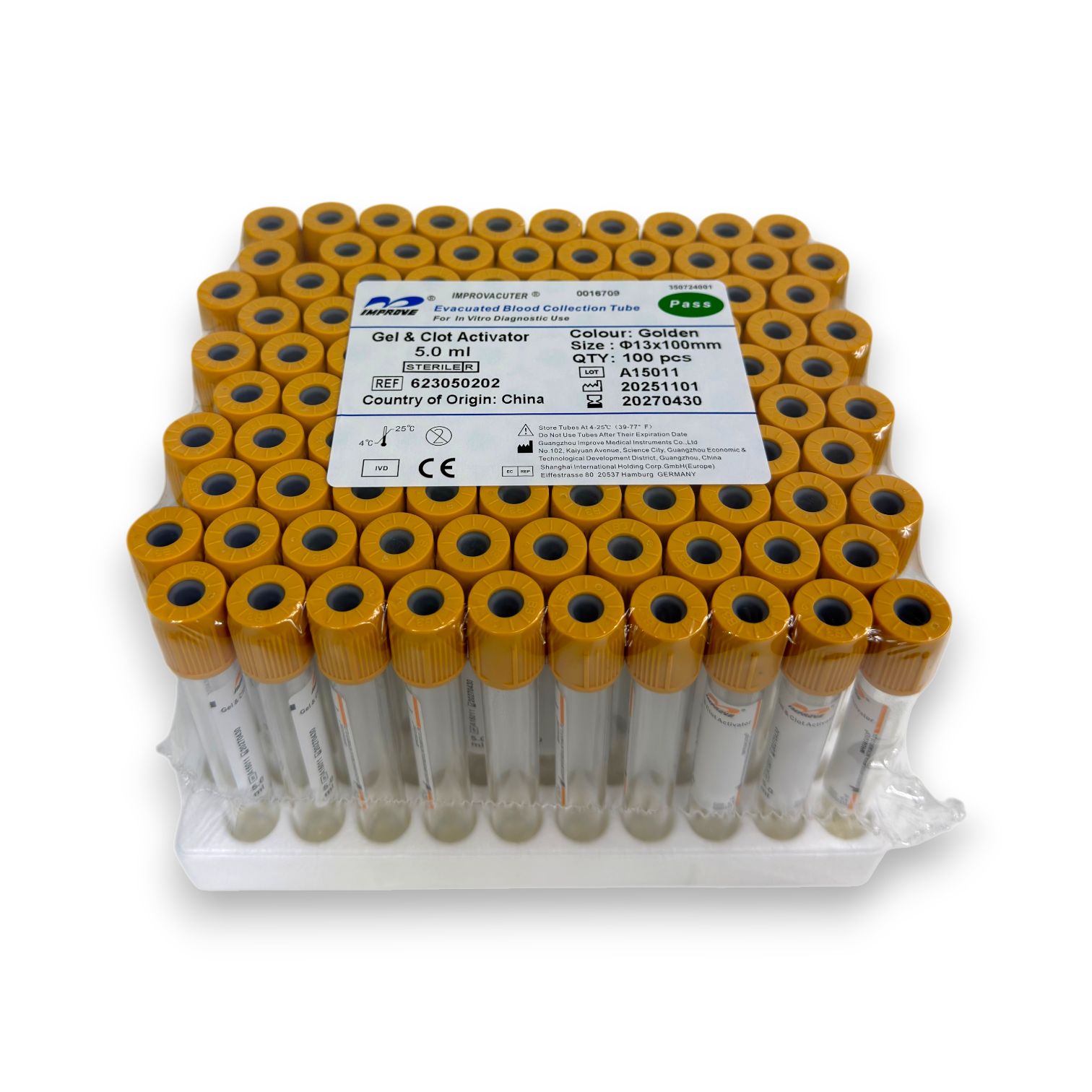 | Plastik | 13×100 mm | 5ml | Bezpieczny/żółty | Papierowa | Żel i aktywator krzepnięcia | 100szt. |