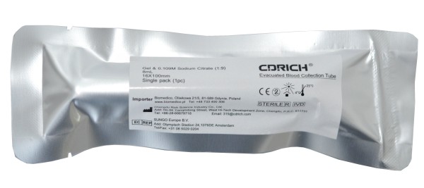 Plastik | 16×100 mm | 8 ml | Bezpieczny/Niebieski | Papierowa | Cytrynian Sodu | 1/50 szt. |