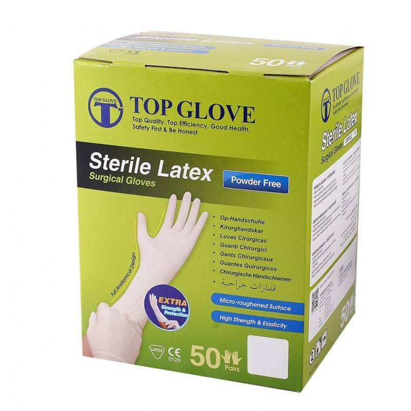 Rękawice chirurgiczne lateksowe TOP GLOVE PF (Rozm. 6.5), bezpudrowe, sterylne, 1 para