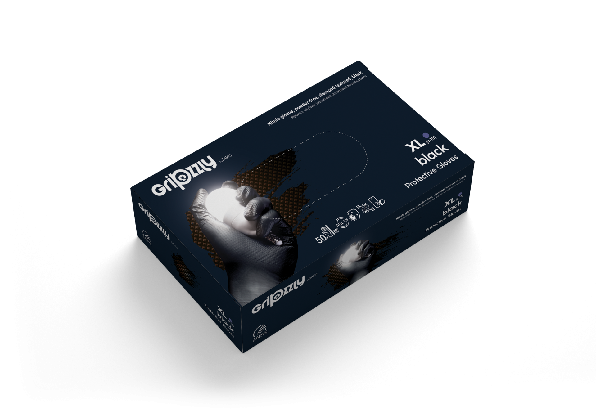 Rękawice nitrylowe PF GRIPZZLY Czarne (Rozm. XL), wzmocnione z diamentową teksturą, 50szt./op.