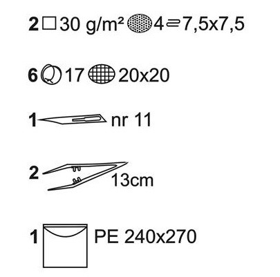 Jałowy materiał gotowy do natychmiastowego zastosowania w gabinecie zabiegowym, na oddziale szpitalnym lub w domu pacjenta.
