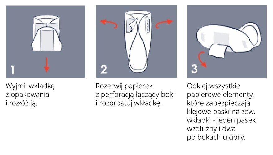 • Paski klejowe na spodzie wkładki pozwalają na przyklejenie jej do bielizny i zapobiegają przemieszczaniu się
