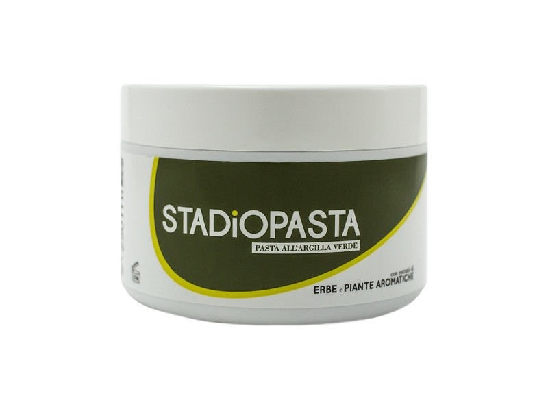 STADIOPASTA to kremowa pasta na bazie argilli zielonej, ekstraktów roślinnych (kasztanowca, malwy, nagietka, arniki), olejów aromatycznych (sosny mugo, rozmarynu, lawendy, mięty). Maść lecznicza przeznaczona jest do nakładania na skórę o działaniu ochronnym, zmiękczającym i relaksacyjnym. Likwiduje siniaki oraz ból. Właściwości argilli oraz wyciąg z ziół mają działanie lecznicze, gdyż skutecznie eliminują urazy powstałe po stłuczeniach, skręceniach, naciągnięciach i naderwaniach mięśni, ścięgien oraz wiązadeł.