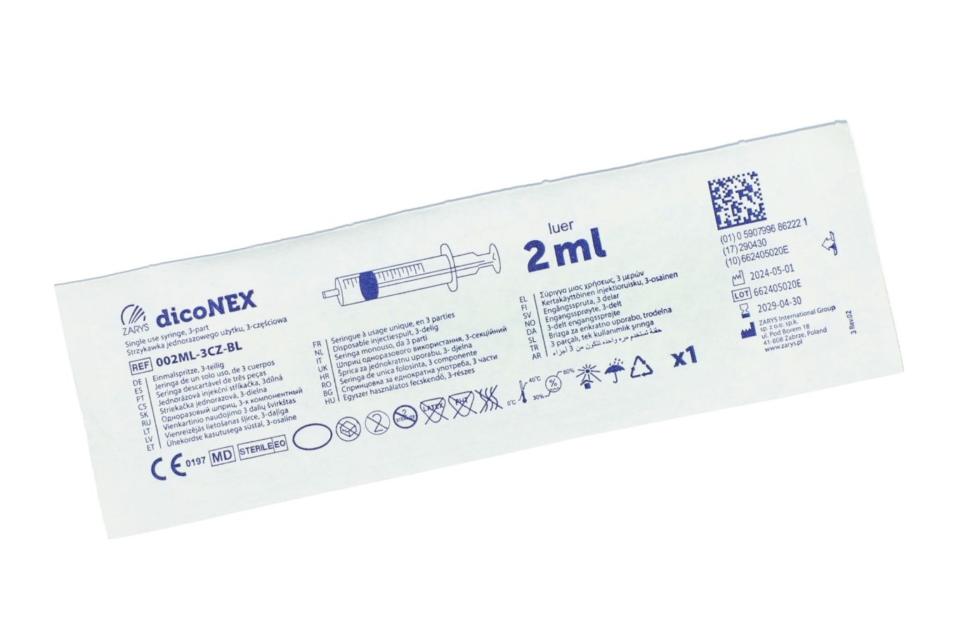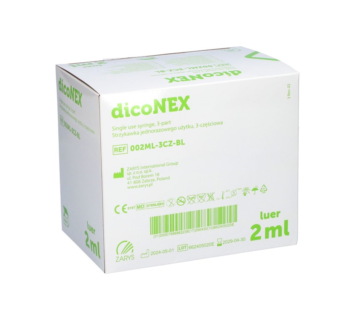 Strzykawka zbudowana z trzech części. Przezroczysty cylinder, zielony tłok i bezlateksowy uszczelniacz dla lepszego przesuwania tłoka . Wyrób jednorazowego użytku z kryzą zabezpieczającą przed przypadkowym wysunięciem tłoka oraz z zakończeniem stożkowym typu luer. Strzykawka przeznaczona do pobierania, podawania leków/płynów oraz pobierania próbek płynów ustrojowych od pacjenta.