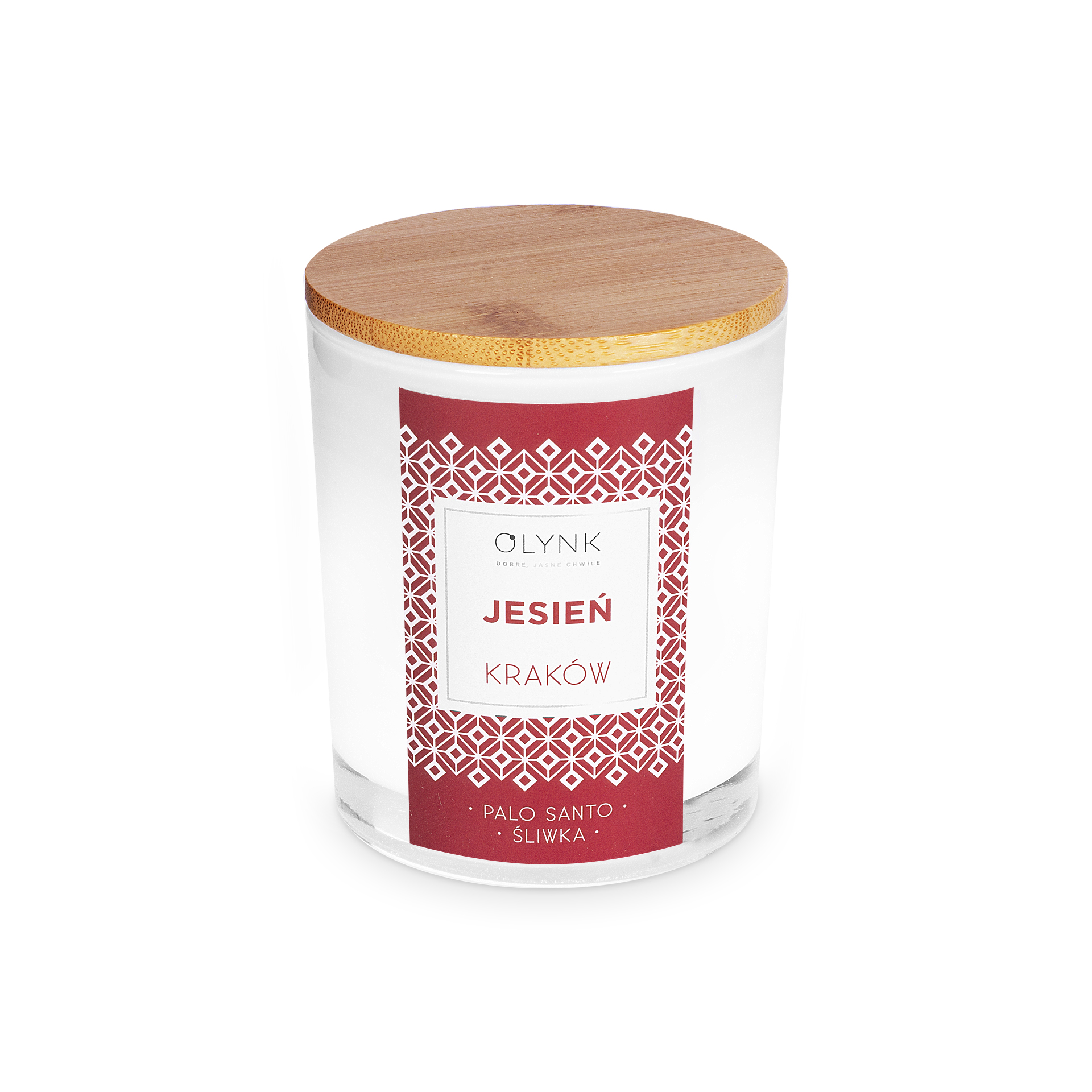 Świeca z wosku sojowego w szkle – JESIEŃ Kraków (palo santo – śliwka), 280ml
