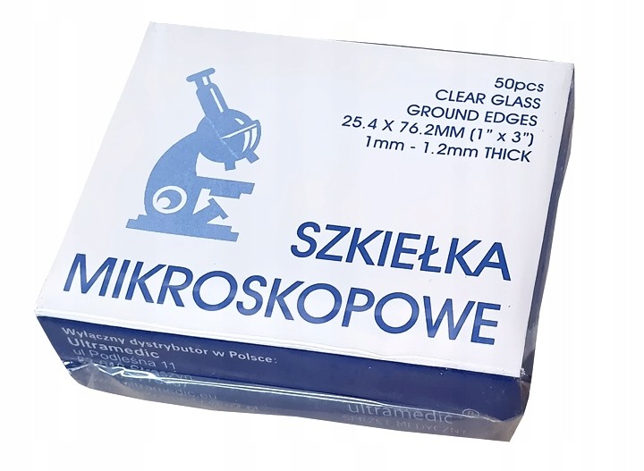 Szkiełko mikroskopowe podstawowe, przeznaczone do umieszczenia na nich materiału obserwowanego za pomocą mikroskopu. Wykonane z wysokiej jakości szkła
