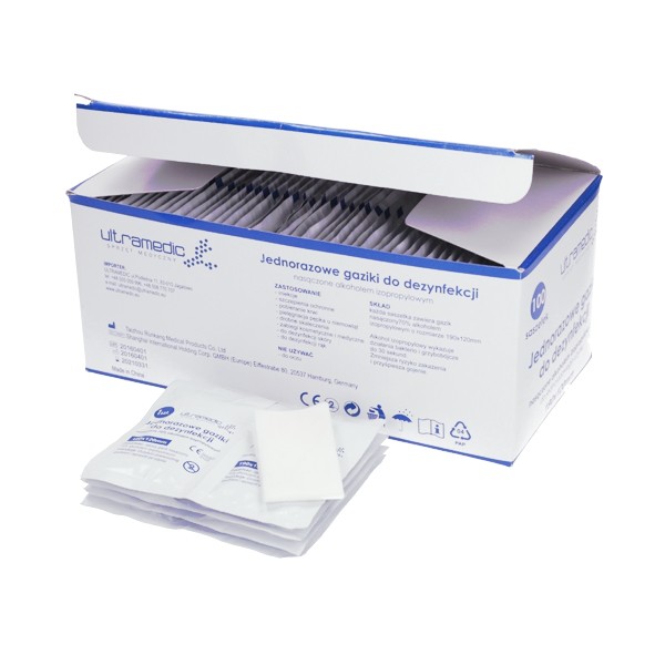 Kompres gazowy nasączony 70% alkoholem izopropylowym. Przeznaczony do dezynfekcji niewielkich powierzchni, dezynfekcji skóry przed iniekcjami, szczepieniami czy pobieraniem krwi.